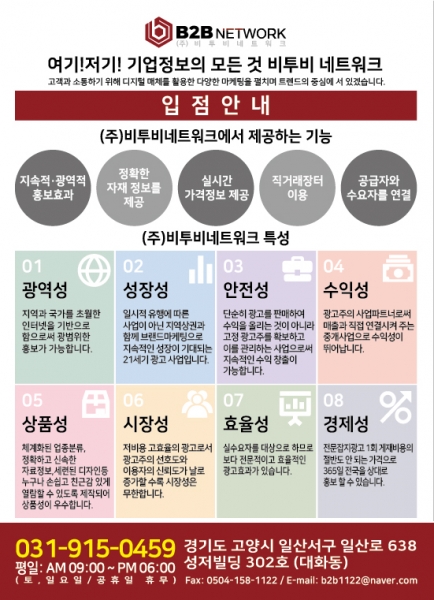 (주) 여기저기 입점 광고비 1년 120,000원 (V.A.T별도) 월 만원입니다.